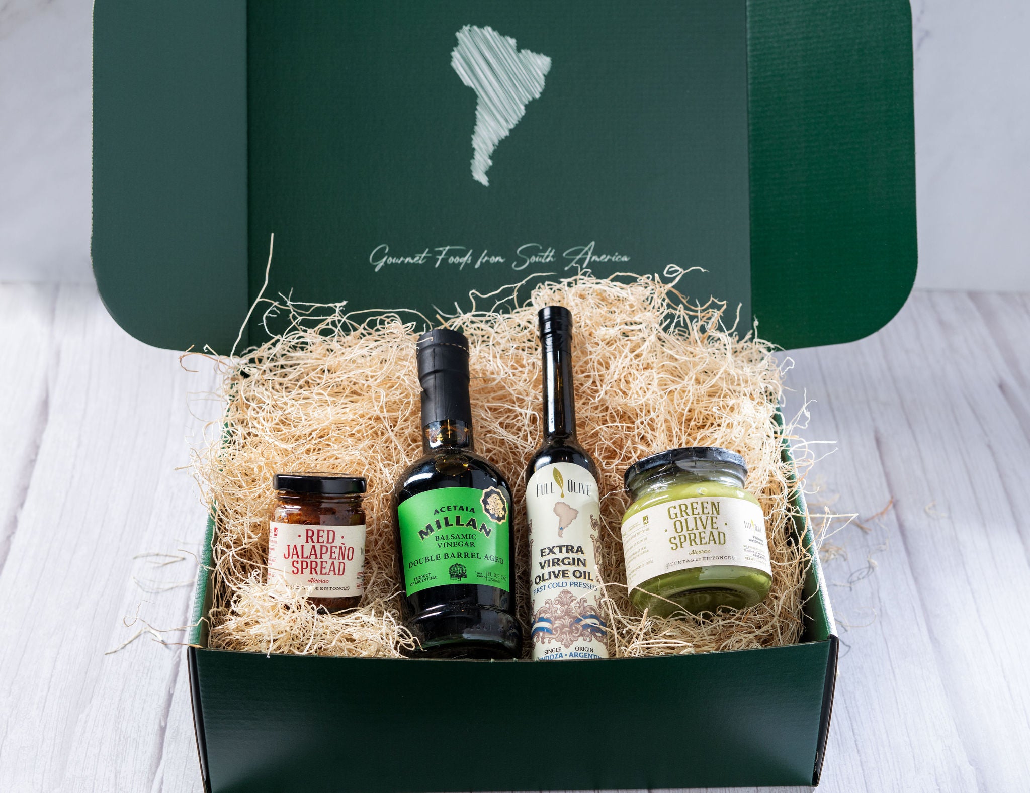 For the thoughtful gifter or holiday hostess. The Mini may be small in size, but it’s full of flavor, featuring our Full Olive extra virgin olive oil, rich aged balsamic, and two of our most-loved spreads. A beautifully balanced box that makes the perfect gourmet thank-you or holiday surprise.