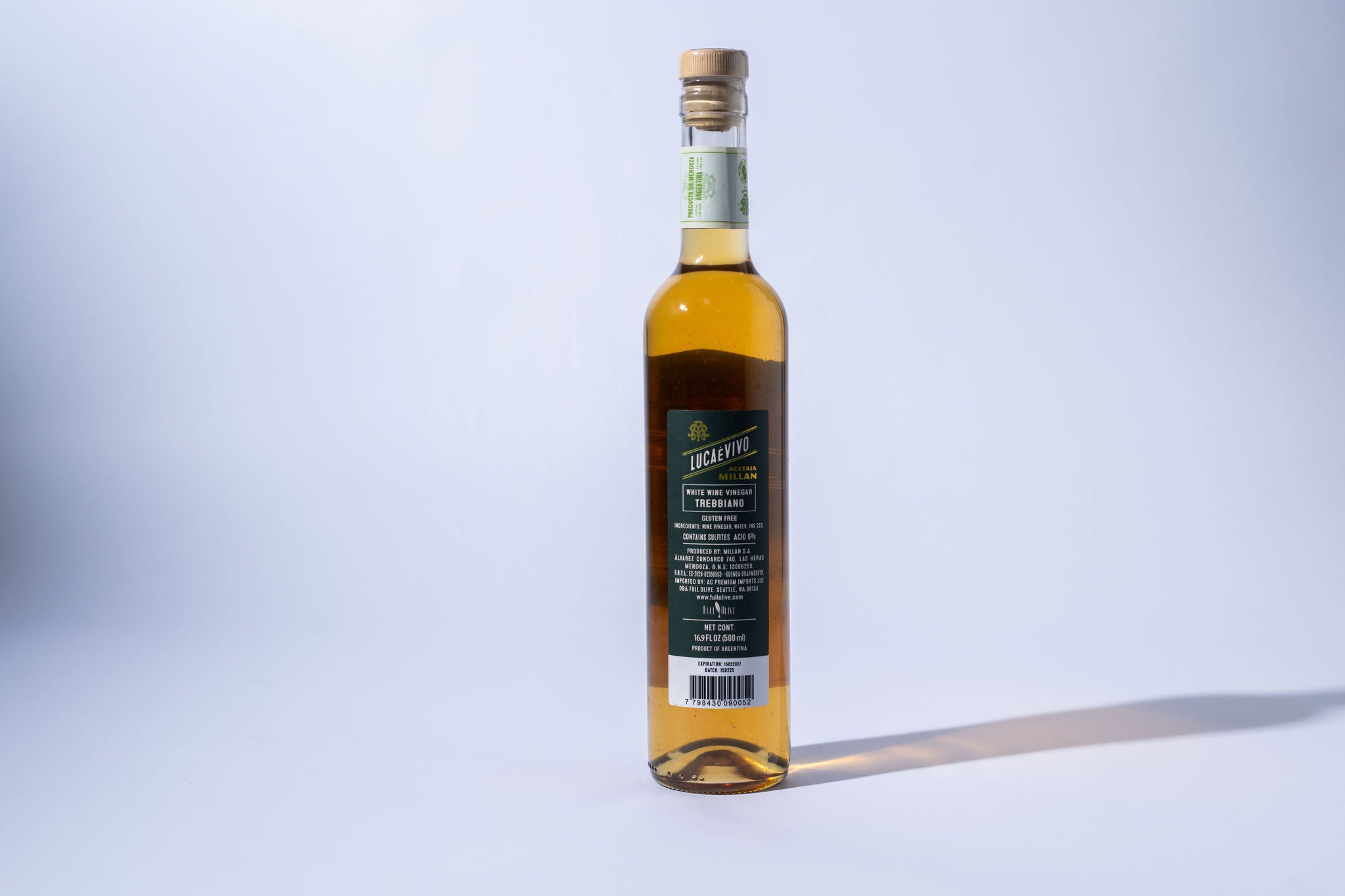Made from Trebbiano grapes grown in the high-altitude vineyards of Mendoza, Argentina, this white wine vinegar is aged for six months in oak barrels, adding subtle layers of softness and depth. Crisp citrus acidity meets gentle notes of vanilla and stone fruit, making it perfect for vibrant vinaigrettes, seafood, and anything that calls for a lift without the bite.